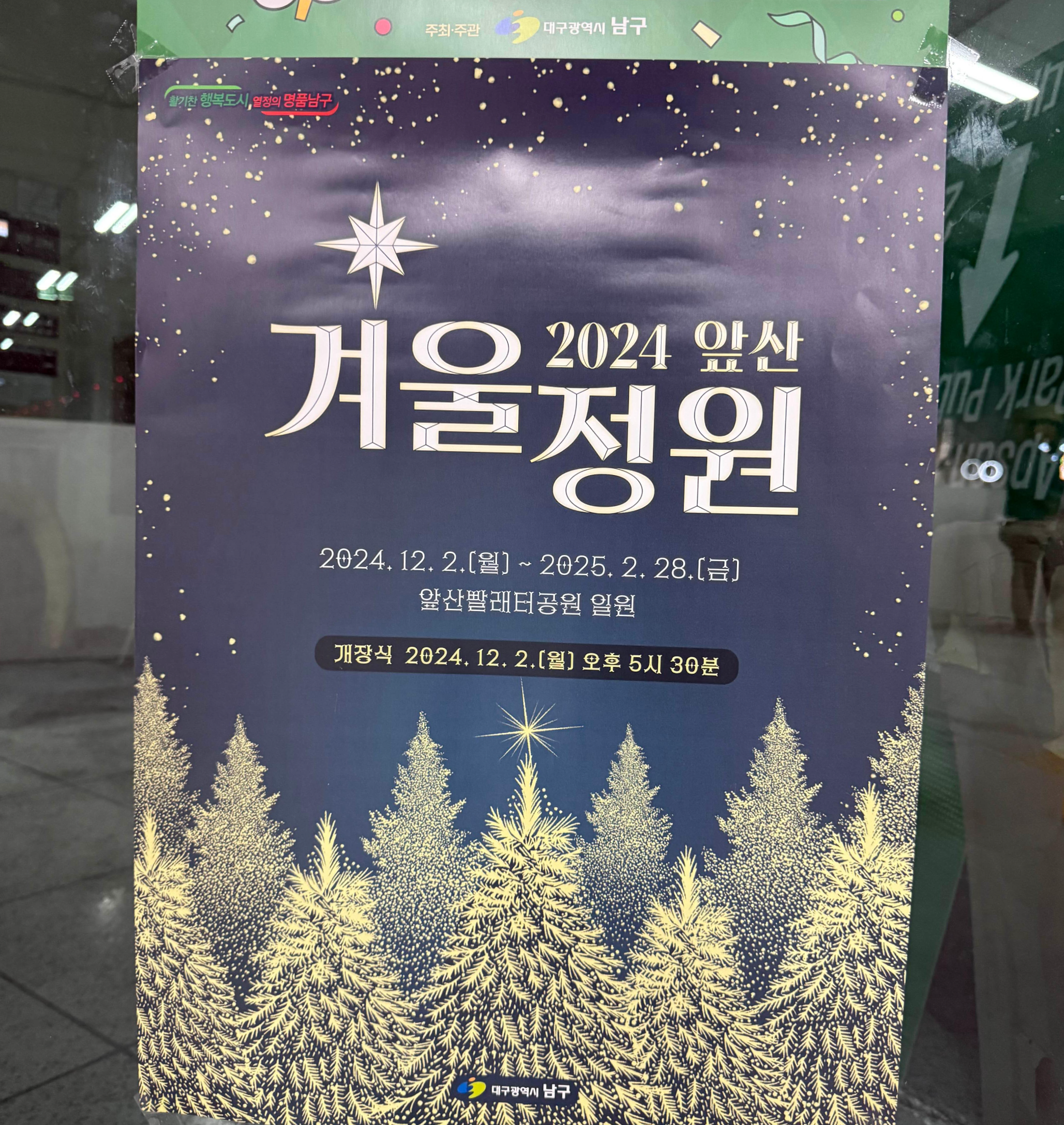 대구 남구 앞산빨래터공원은 매년 겨울마다 환상적인 빛 축제로 변신합니다. 2024 앞산 겨울정원은 12월 2일부터 2025년 2월 28일까지 약 3개월간 운영되며, 올해는 약 1km 구간에 걸쳐 작년보다 더 확장되고 화려해진 조형물과 아름다운 조명으로 연출됩니다.