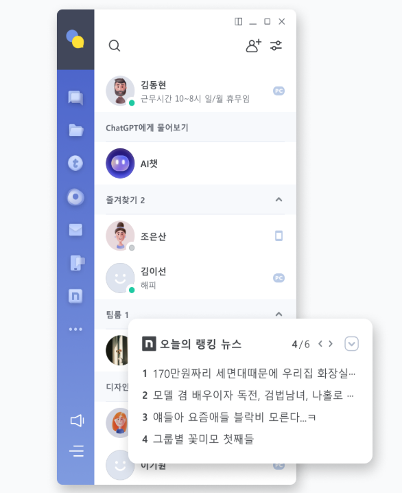 최근 업데이트에서는 AI 기반 자동 응답 기능이 도입되어 단순 반복적인 대화나 안내를 대신 처리할 수 있습니다. 다국어 지원 기능도 강화되어 해외 프로젝트나 외국인과의 커뮤니케이션에서도 활용도가 높습니다.