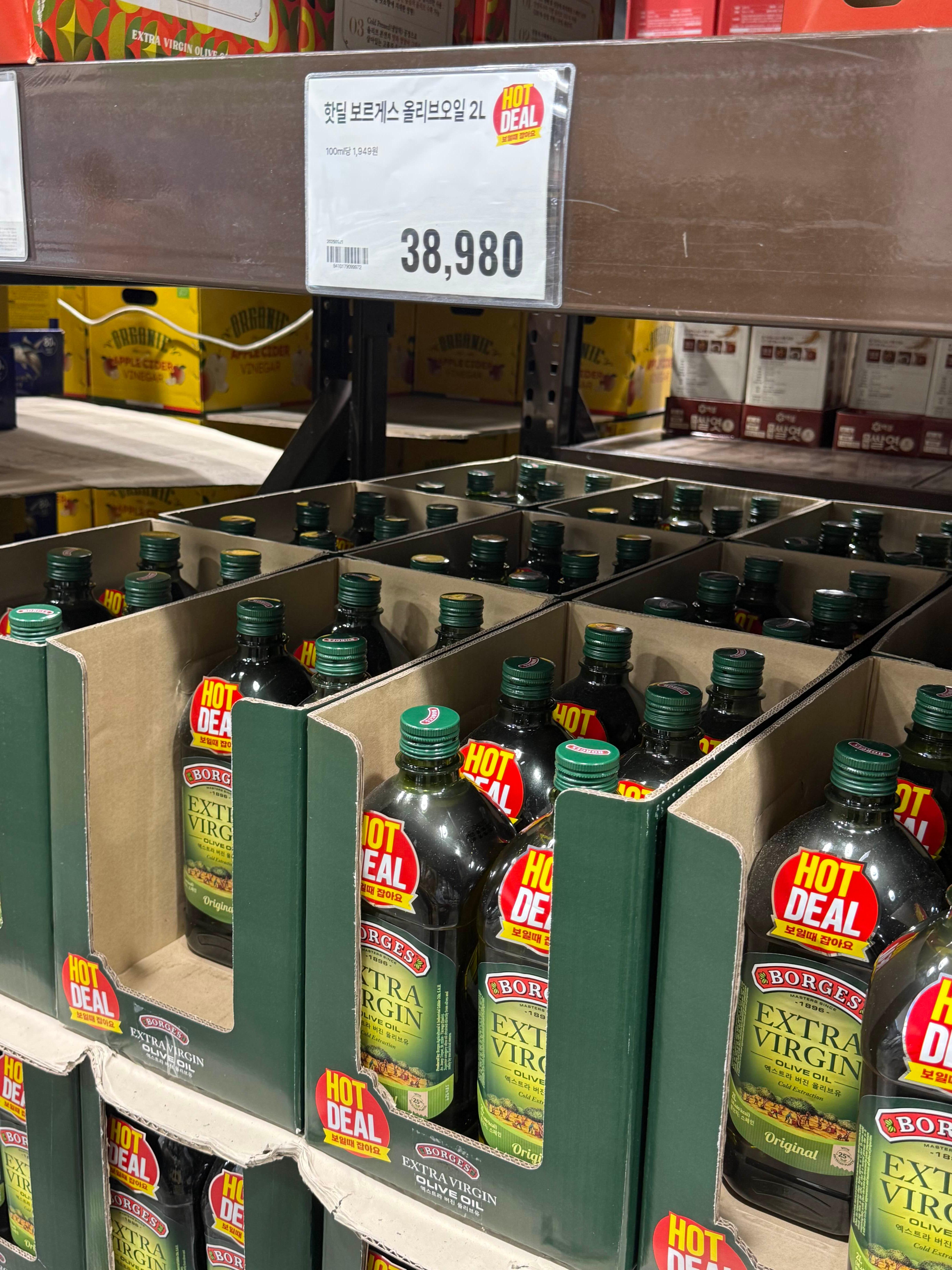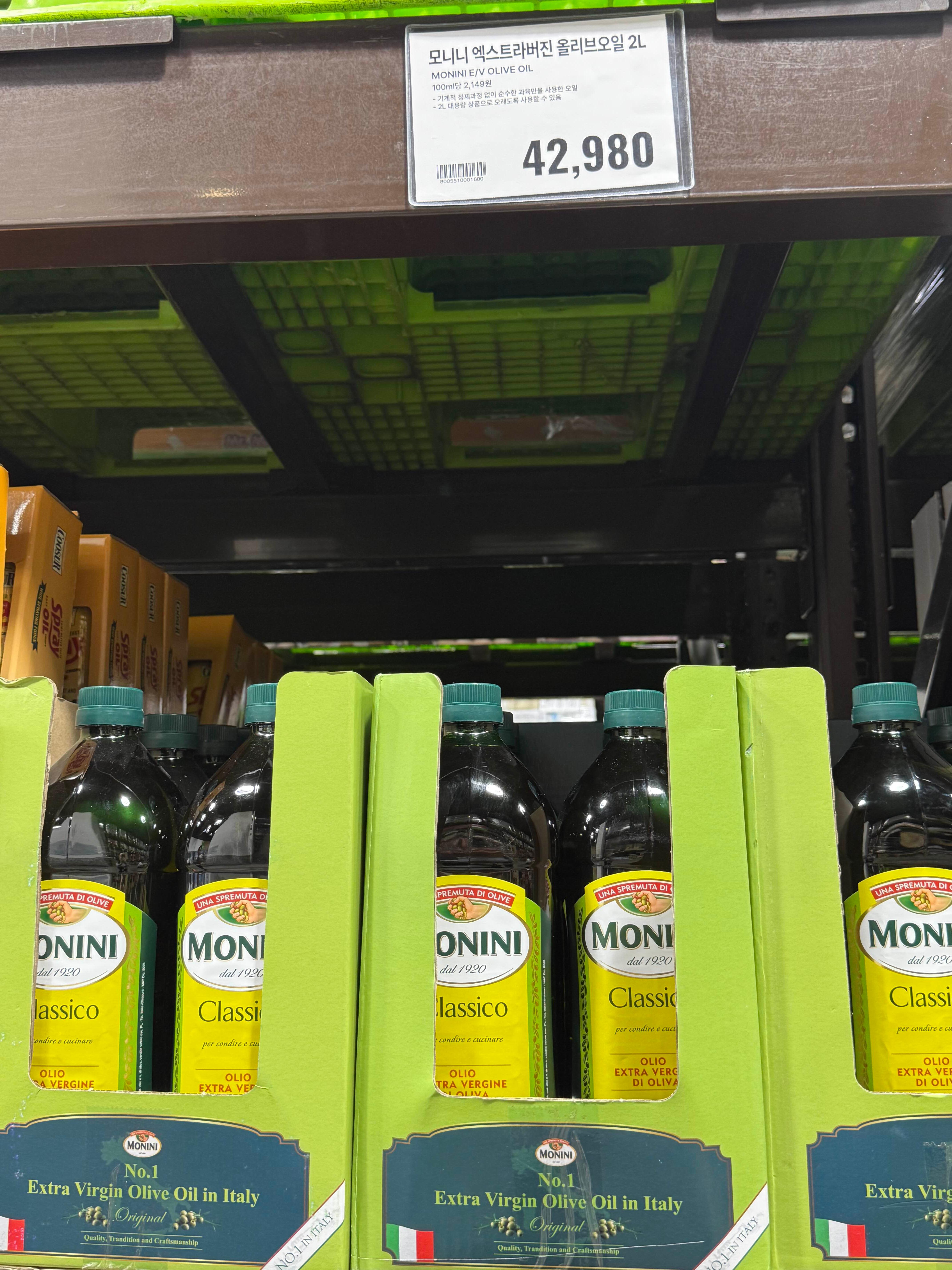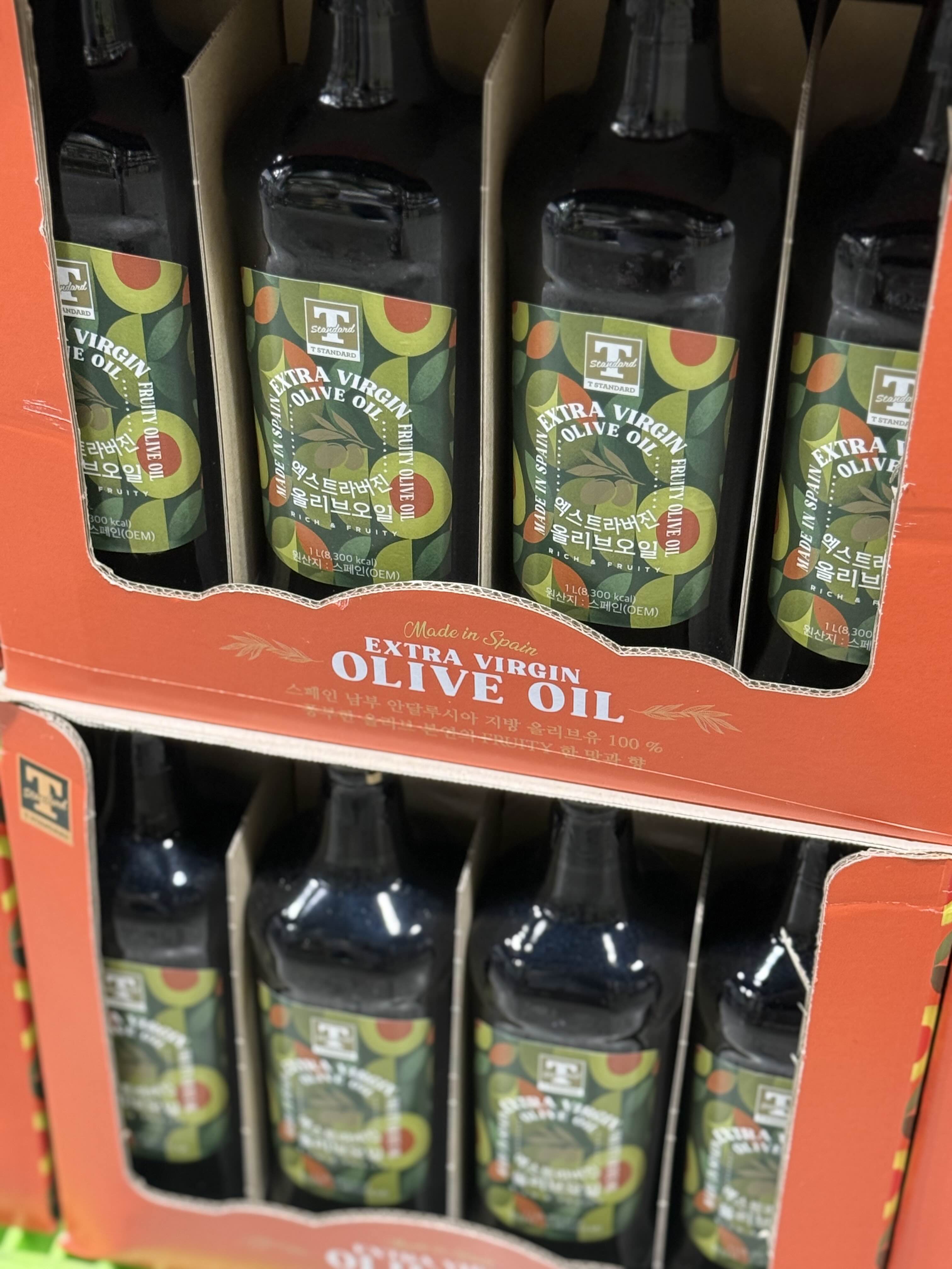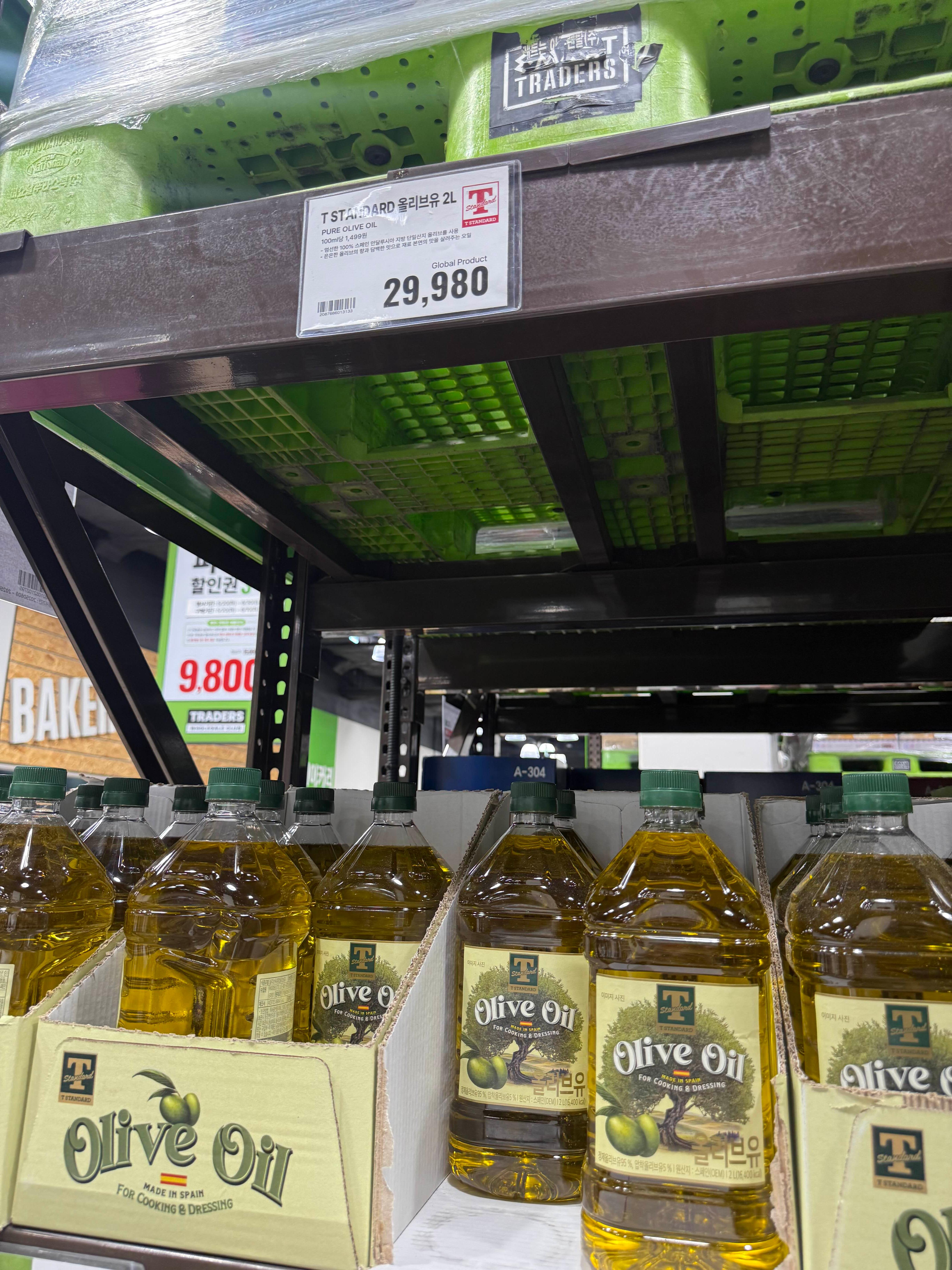 셋째, 투명한 병보다 짙은 녹색 병을 선택하세요. 빛에 의한 산화를 최소화해 품질을 오래 유지할 수 있습니다. 트레이더스 올리브 오일 대부분은 녹색 유리병에 담겨 있어 장기 보관에도 안정적인 편이었습니다.