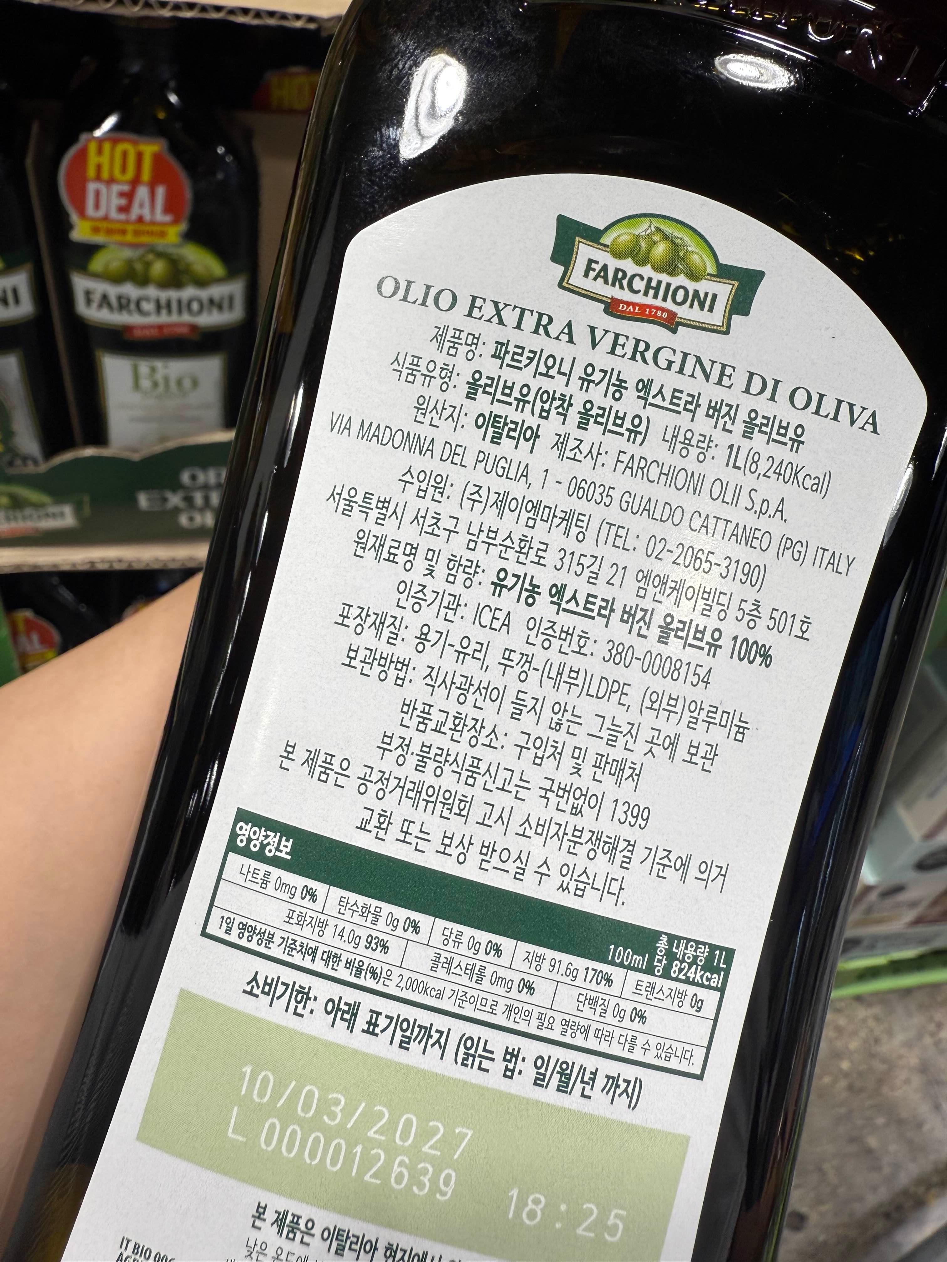 저는 파르키오니 유기농 엑스트라버진 올리브오일 생식용으로 1L